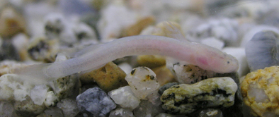 주홍미끈망둑 일종, 머리는 크고 눈은 퇴화