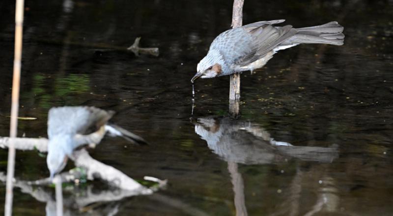 목 축이는 직박구리