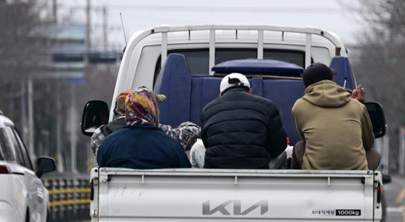 위험천만… 짐칸에 탄 사람들