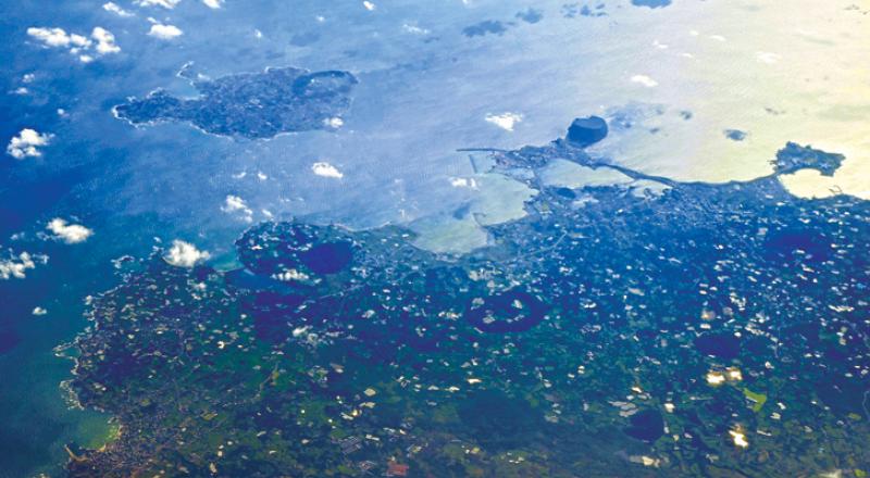 하늘에서 내려다 본 성산일출봉과 우도