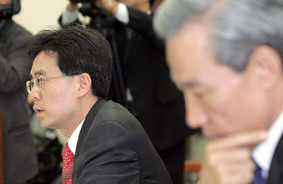 ▲김현종 통상교섭본부장(왼쪽)과 김종훈 수석대표가 4일 국회 통일외교통상위원회에서 한미FTA 협상 결과에 대해 보고하고 있다. 연합뉴스