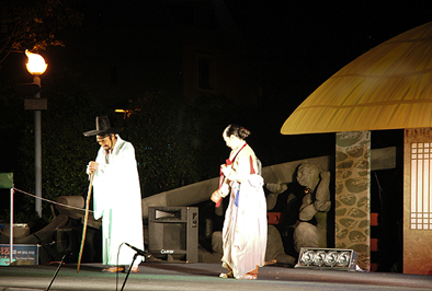 ▲지난 8월 제주시 산지천 인근에서 열린 산지천 예술마당 행사에서 공연된 제주도연극협회의 제주어연극 '뺑파 삼다 사랑가'.