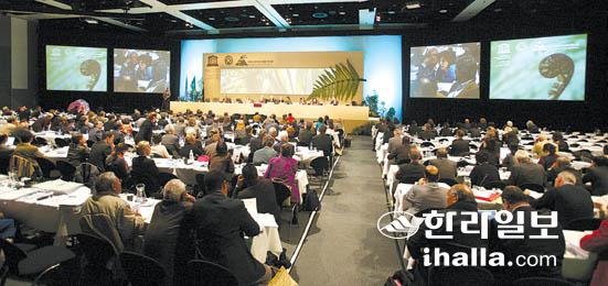 ▲제주 '화산섬과 용암동굴'이 우리나라 최초의 세계자연유산으로 등재되던 제31차 세계유산위원회 당시 장면. 19일 치러지는 17대 대통령선거에서 제주 세계자연유산에 대한 공약도 잇따라 후속사업이 탄력을 받을지 주목되고 있다. /사진=특별취재팀