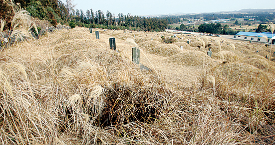 ▲성읍공설묘지 첫 머리에 묻혔던 조몽구의 무덤은 2년전 다른 곳으로 이장됐다. 그 자리엔 억새가 피어났다.