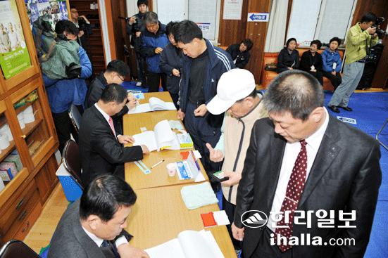 ○…호우.강풍 특보 발효가 예상되는 가운데 궂은 날씨로 9일 오전 투표소를 찾는 유권자들의 발길이 그 여느 선거 때보다 한산한 모습. 이날 이른 아침 서귀포시선거구 표선면 제3투표소를 찾은 강모씨(64)는 "비록 이른 시간이지만, 궂은 날씨로 예년 선거 때보다 투표하러 오는 사람들이 뜸한 편"며 "선거날 비가 내리면 투표율이 높아진다고 하나, 이렇게 많은 비가 계속 내리면 오히려 투표율이 떨어질 것 같다"고 우려.