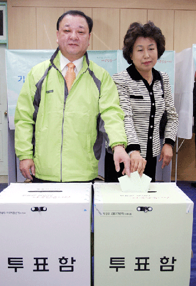 [투표 이모저모]신명수 후보, 부인 이경순씨와 …