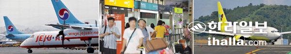 ▲기존 제주항공과 한성항공에다 이번달부터 진에어 등 제주노선을 운항하는 신생 저가항공사 설립이 가속화 되면서 제주국제공항 슬롯 활용과 각종 이용시설물에 대한 포화상태가 예상되며, 이에 따른 신속한 대책 마련과 함께 신공항건설 문제가 현안으로 대두 되고 있다. /사진=한라일보 DB
