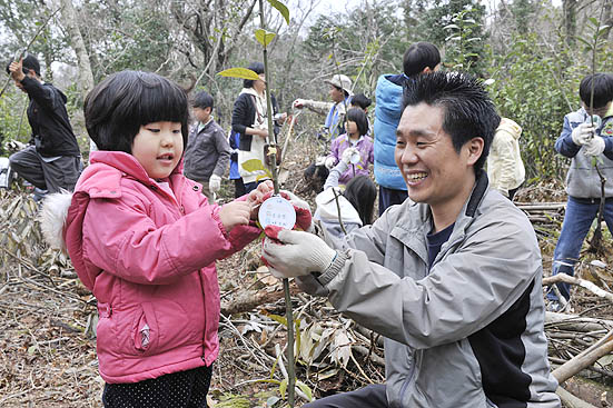 어린이들은 부모님이 파준 구덩이에 자신의 키보다 훨씬 큰 붉가시나무 묘목을 옮겨 놓고, '무럭무럭 잘 자라라'며 흙을 덮고 고사리같은 손으로 '꾹꾹' 눌러주었다.