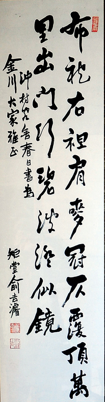 또한 '서유견문'으로 유명한 개화파 유길준(1856~1914)이 일본으로 망명한 뒤 1900년대 초 하치조지마에서 3년 동안 갇혀지내기도 했다. 유길준은 이곳에 있다가 인근의 오가사와라 섬에서 지내기도 했다. 유길준이 이 섬에서 남긴 서예작품<사진>은 현재 하치조마치 역사민속자료관에 전시되고 있다.
