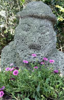 돌하르방에 그새 세월의 켜가 쌓였다. 곶자왈 같은 천연 잡목림에서 불어대는 바람과 구름의 향기가 그렇게 만들었을 것이다. 제주의 대표적 상징물인 돌하르방이 천연림과 어울려 있는 것은 이 공간의 성격을 말해준다. 자연과 예술의 만남이다.