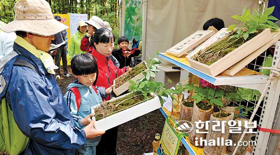 또 전시관에선 한라산 자락에서 생산되는 임산자원인 표고버섯 재배과정도 전시중이다. 간이표고재배장이 마련돼 참나무 자목에 구멍을 뚫어 버섯 종균을 집어넣는 체험도 가능해 어린이들의 호기심을 자극하고 있다.