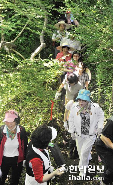 ▲거문오름의 진가를 확인해 볼 수 있는 2009 세계자연유산 거문오름 국제트레킹대회가 18일부터 한달동안 제주시 조천읍 선흘2리 거문오름 및 뱅뒤굴 일원에서 열린다. 사진은 지난해 거문오름 트레킹대회 장면. /사진=한라일보 DB
