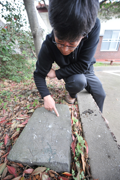 ▲제주시 도두동 주민센터 앞마당엔 '등명대'란 글자가 남아있는 비문이 나뒹굴고 있다.