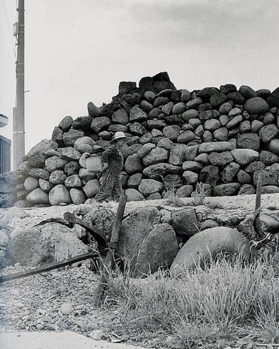 추적추적 비날씨속에 일찌감치 땅거미가 졌다. 바다 한가운데 떠있는 범섬의 윤곽이 희미하게 잡힐 뿐이다. 얼마전 찾은 서귀포시 강정 포구. 근래 해안도로가 뚫리면서 지형이 바뀌었다. 범섬을 눈앞에 둔 강정어촌계 사무실 옆에 있는 '돌무더기'도 그중 하나다. 1997년에 출간된 '제주의 도대불'(이덕희)에 희미하게 남아있던 밑둥마저 스러졌다. 갯돌 예닐곱개가 옛 모습을 간신히 붙잡게 만든다.