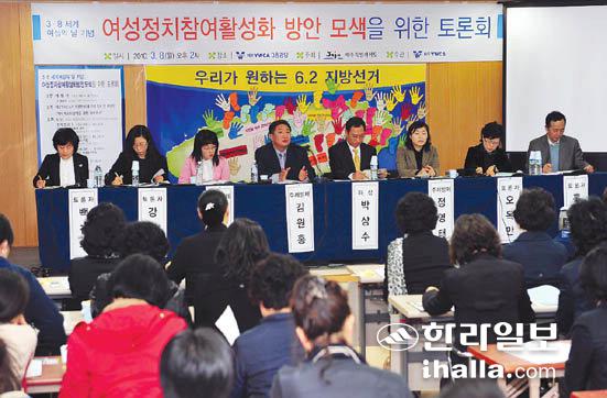▲8일 3·8세계여성의 날을 맞아 제주YWCA가 마련한 '여성정치참여 활성화 방안 모색을 위한 토론회'가 제주 YWCA 강당에서 열렸다. /사진=이승철기자