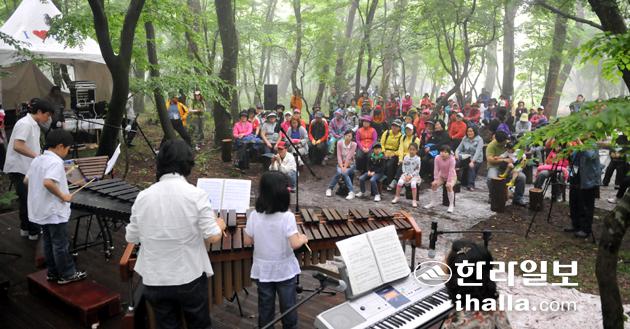 ▲제2회 제주산림문화체험 사려니숲길 걷기행사 개막 이틀째인 13일 오전 행사장에서는 '숲속 작은 음악회'가 펼쳐졌다. /사진=강경민기자