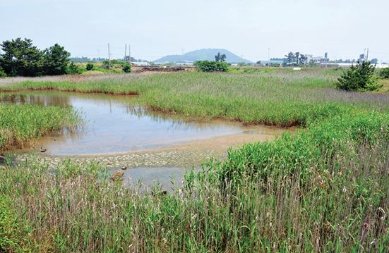 ▲갈대밭으로 변한 동일1리 복원 소금밭 인근의 염전터. 기능잃은 염전은 대개 그렇게 사라졌다.