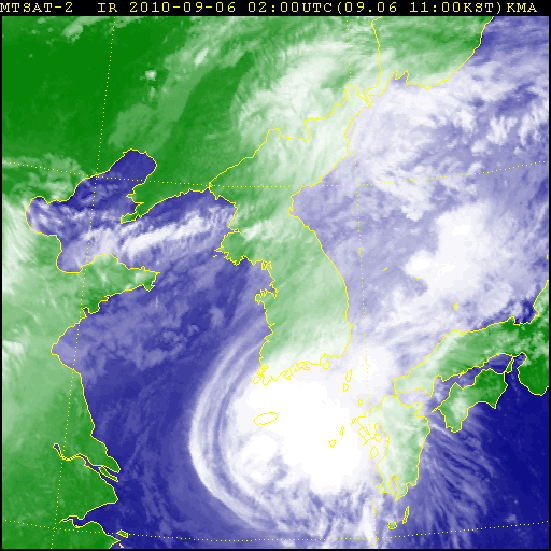 9월6일 오전 11시 현재 9호 태풍 '말로'의 구름영상 사진.