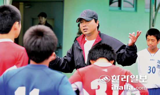 ▲제주중 축구팀 신병호 감독은 모교에서 제2의 축구인생을 살고 있다. /사진=강경민기자