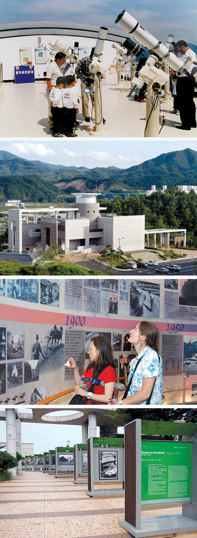 ▲강원도 영월군은 폐광지역 이미지를 벗고 박물관 고을로 면모 일신한 것으로 유명세를 타고 있다. 단순히 건물만 짓고 입장료만 받는다고 해서 박물관고을이라 이름 붙일 수는 없다. 각 박물관은 저마다 마을과 발전할 수 있는 사업으로 연계된다. 사진 맨 왼쪽은 별마로천문대이며, 나머지 사진은 사진박물관 모습. /사진=공동취재단
