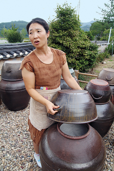 ▲수애당 안주인 문정현씨는 장이 제대로 발효되도록 왕소금과 숯, 황토를 차례로 쌓은 뒤 자갈을 깔고 장독대를 올려놓았다.