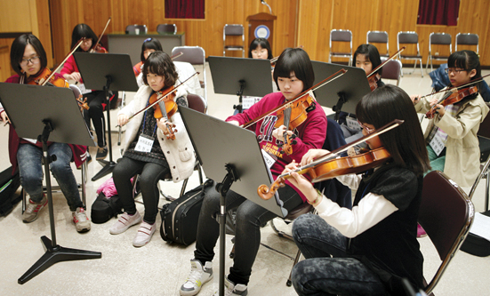 ▶서귀포발 '엘 시스테마' 꿈꿔=지자체가 청소년오케스트라를 운영하는 사례는 드물다. 서귀포시는 지역의 문화예술 인적 자원을 발굴하고 청소년 문화예술 활동을 지원할 목적으로 오케스트라 창단을 추진했다. 한국마사회 출연재단인 농촌희망재단의 농촌희망문화교실 청소년오케스트라 지원 사업 공모에 선정되면서 꿈을 현실로 만들었다.