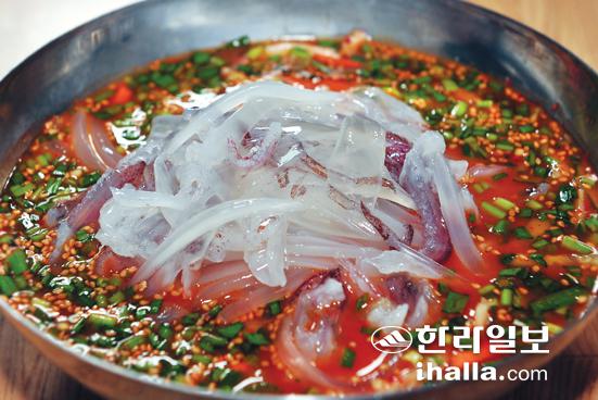 쫄깃쫄깃하게 씹히는 맛이 일품인 한치는 아직 철이 좀 이르다. 하지만 서둘러 한치물회가 맛있는 집을 수소문하던 차에 마침 주인장 김정수(50)·강미애(47)씨 부부로부터 한치가 들어왔다는 연락을 받았다.