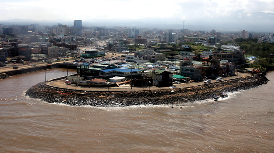 ▲집중 호우시 다량 유입된 빗물로 바다가 흙탕물로 변했다. /사진=한라일보 DB