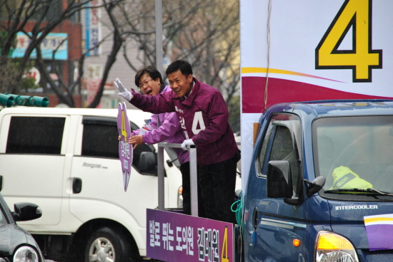 6일 일도2동 일대를 돌며 선거유세를 펼치고 있는 통합진보당 김대원 후보.
