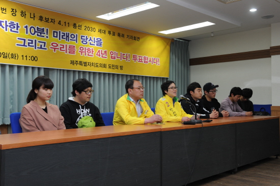 민주통합당 장하나 비례대표 후보(13번)는 10일 오전 제주특별자치도의회 도민의 방에서 기자회견을 열고 "청년세대의 기록적인 투표참여로 민주주의의 숭고한 가치를 증명하자"고 당부했다.