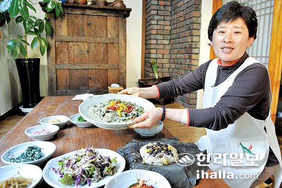 ▲주인장 박씨가 한상차림을 선봬고 있다.