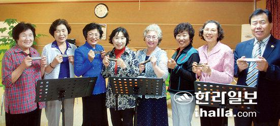 ▲서귀포시 지역 60세 이상 여성들로 구성된 참꽃하모니카합주단은 나이를 잊은 채 하모니카를 통해 '소녀시절'의 추억을 빚어내고 있다. /사진=진선희기자