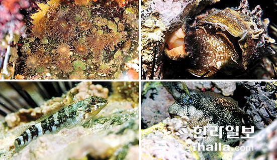 ▲한담해안 조하대에 서식하고 있는 말미잘 등 다양한 해양생물들.