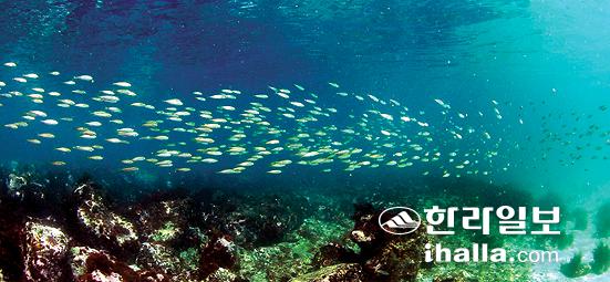 ▲하얀모래로 이루어진 제주시 애월읍 한담해안 조하대에서 치어떼들이 유영을 하고 있다. /사진=조성익 자문위원