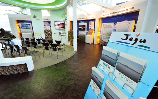 ▲WCC 행사장에 마련된 제주도 홍보관이 손님을 맞을 채비에 한창이다. /사진=강희만기자