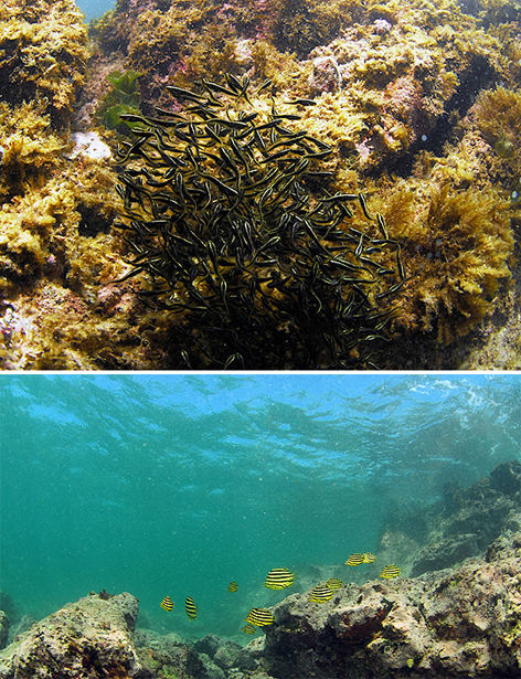 이와 함께 조하대에서는 모란갈파래 ,불레기말, 참그물바탕말, 주름뼈대그물말, 부챗말, 반질불레기말, 참지누아리, 붉은까막살, 부챗살이 관찰됐다.