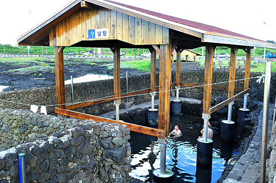 ▲신창리 해안도로에 있는 '신개물'은 풍부한 수량을 자랑하고 있어 노천 목용탕으로 활용되고 있다.