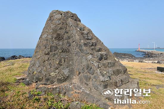 ▲김녕 해수욕장 서쪽 해안 낮은 언덕에 자리잡고 있는 김녕 도대불.