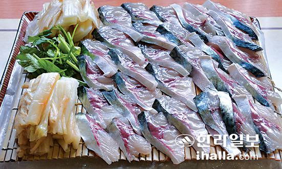 ▲가을에서 겨울에 지방질이 많아 더욱 맛있는 고등어회