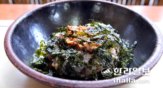 ▲고등어살을 발라내 양념해 볶아 얹어낸 고등어밥. 강희만기자
