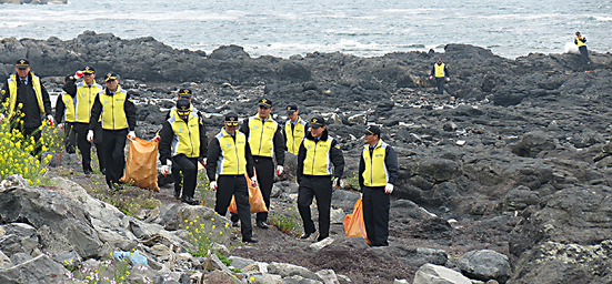 ▲제주해경은 해안가를 중심으로 쓰레기 수거 등 환경정화 활동을 벌이면서 바다의 안전뿐만 아니라 청정환경까지 지켜나가고 있다. 사진=제주해경 제공