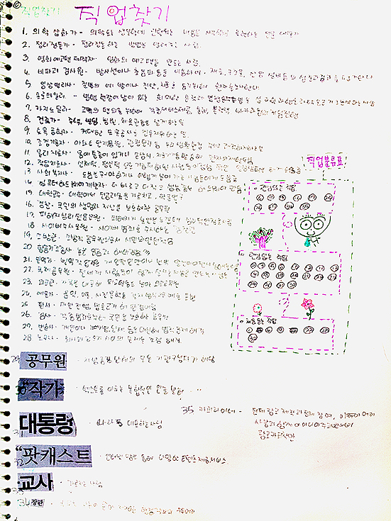 2. 자기가 관심 있는 직업과 관심 없는 직업, 그리고 처음 듣는 직업 등으로 분류해보는 시간을 가지면서 미래의 변화를 스스로 느끼는 시간을 가졌다.