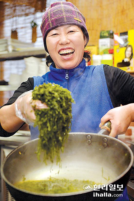 김 대표가 친정엄마랑 5년 전 처음 몸국을 선보일 때는 제주전통방식으로 만들었다. 그런데 올레길을 찾는 여행객들이 주요 손님이다 보니 돼지뼈를 푹 삶아 살코기까지 발라내서 끓여낸 몸국이 입에 맞지 않는다는 이들이 많았다. 그래서 손님들의 취향을 일일이 물어보면서 살코기를 걸려내 칼칼하면서도 깔끔한 국물맛의 몸국을 만들어 선보이고 있다.