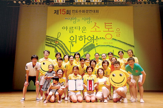 ▲제주시청 종합민원실 직원들로 구성된 '스마일봉사단'은 민원실을 찾는 청각·언어 장애인을 위해 수화를 배우고 있는데, 2012년에는 전도수화경연대회에 참가해 대상을 수상했고 시상금 100만원은 모두 기탁했다.
