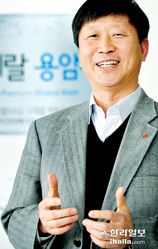 ▲제주용암해수산업단지 입주 1호 기업인 (주)제이크리에이션 김동준 사장은 제주용암수는 세계시장을 석권할 제품이라고 자랑했다. 강경민기자