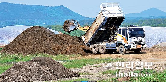 제주시 봉개동 쓰레기 매립장에 야적중인 음식물쓰레기 퇴비. 강희만기자