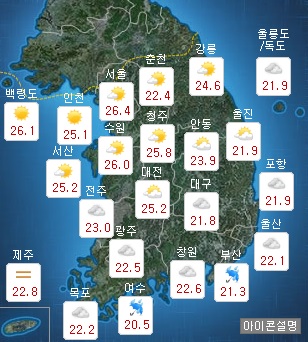 7일 오전 10시 현재 날씨. 사진=기상청 홈페이지 캡처