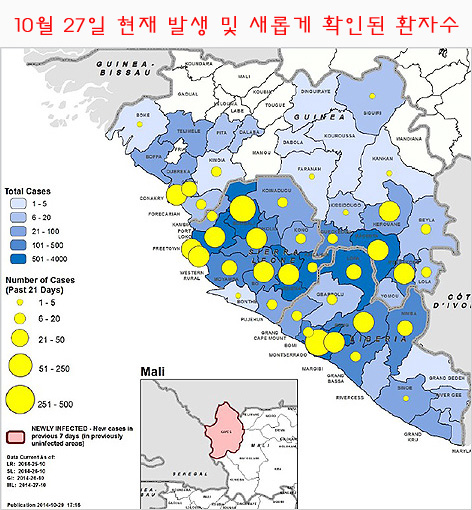특히 최초 발병 국가인 기니아와 인접한 시에라 리온 및 리베리아 3개국에 피해자가 집중돼 있다.