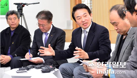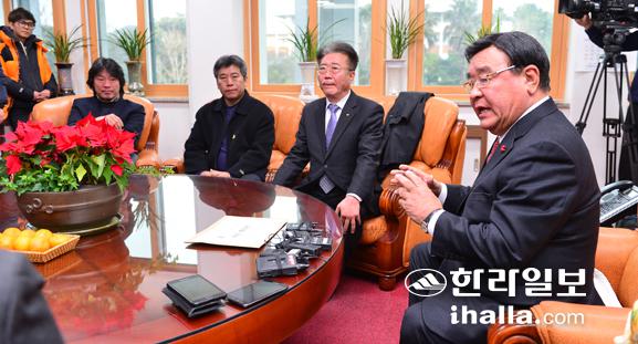 제주시민사회단체연대회의(이하 시민사회연대)는 22일 오전 원희룡 제주지사와 구성지 제주도의회 의장과 면담을 나누고 "예산제도 혁신을 위한 사회적 합의기구를 구성하자"고 제안했다.