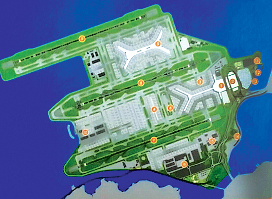 이를 위해 일본 간사이공항 매립시 사용됐던 DCM 기술을 활용해 시공할 예정이다. 할주로와 해수면의 연약층 사이에 모래를 넣어 일정강도의 환경과 타당성을 확보하게 된다. 현재 연간 6000만명이 이용하고 있으며 2030년에는 연간 1억만명 이용이 예상되고 있다. 폐쇄된 공항지역주민을 위한 혜택은 없다. 이미 오래된 주택지역으로 재개발계획에 따라 조성되면서 환경이 좋아지고 상권에 생기가 돌고 있다.
